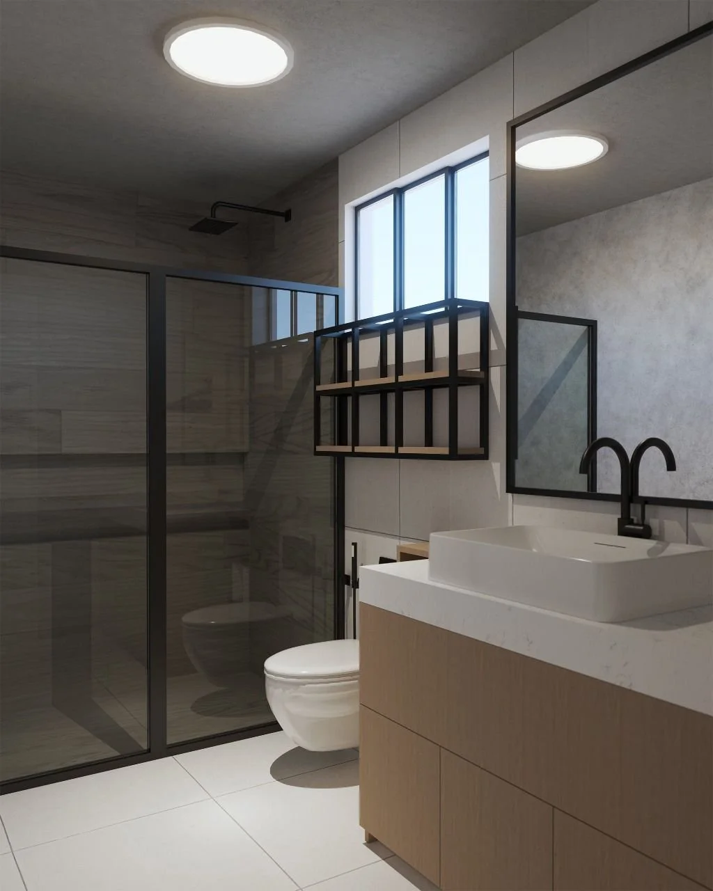 Intervención de un baño en el dormitorio principal para convertirlo en el segundo baño principal en una casa de 4 dormitorios. La propuesta contempló una renovación rápida y personalizada