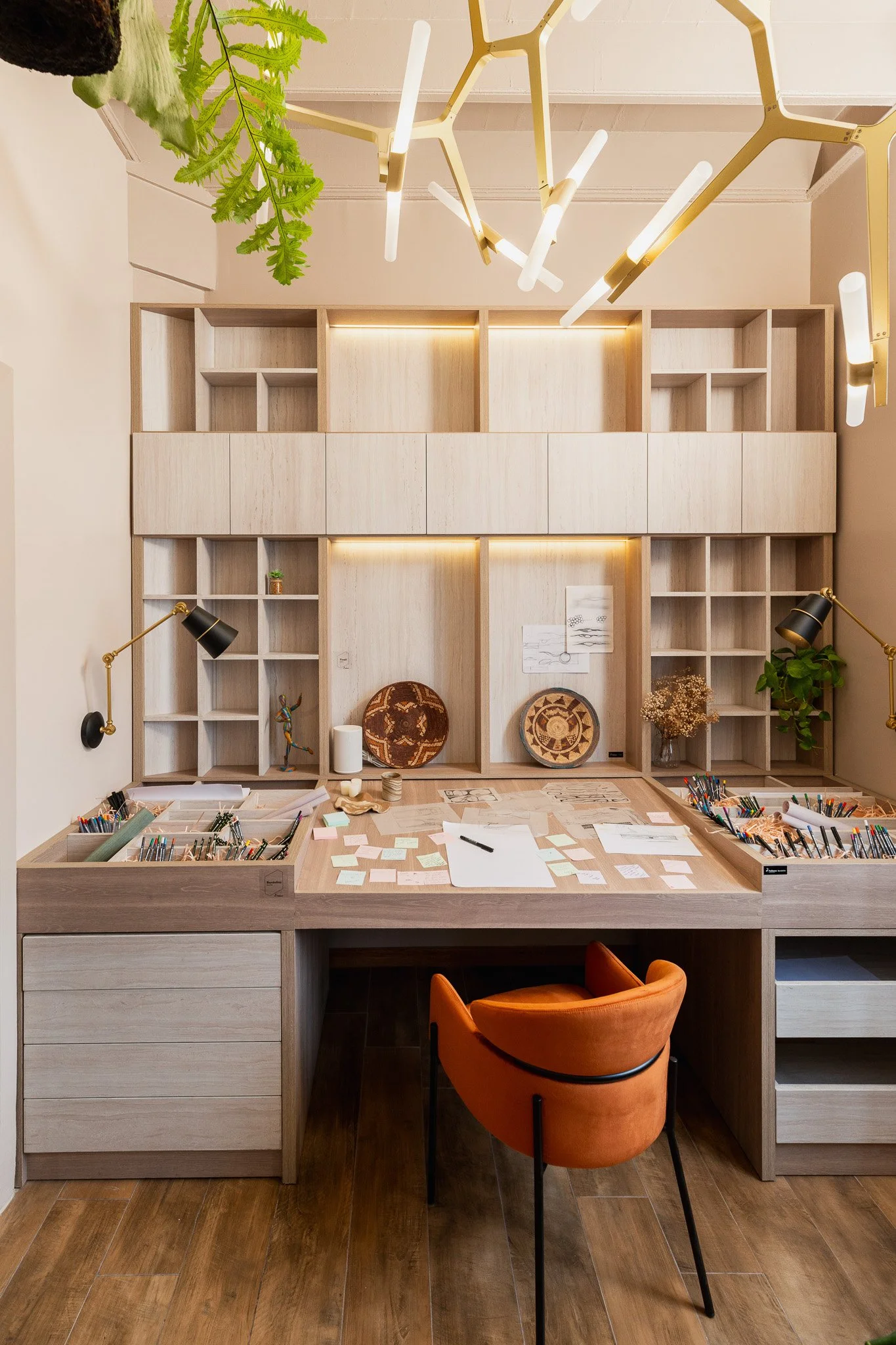 El loft esta dividido en 3 áreas, su oficina donde presenta su lado profesional y más serio, el taller que muestra su creatividad y desarrolla su imaginación, y el habitad que muestra la personalidad de Yura, con objetos, texturas y materiales que reflejan su origen pero sin perder el contacto con las lineas modernas.